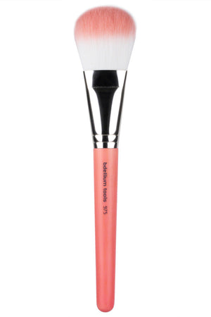 Mixed Powder 975 brush has a large paddle-shaped round dome that is designed to provide a smooth, natural finish on the face or body. The brush also features a tapered handle for easier storage in makeup brush belts.