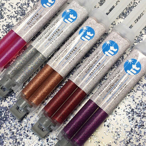 • Glitter suspended in fast drying silicone means no mess!