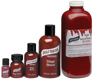 Stage Blood is a mostly opaque, water-based, realistic slit-wrist red blood product that is the same viscosity as real blood. It even dries and crusts up brownish like real blood.
