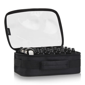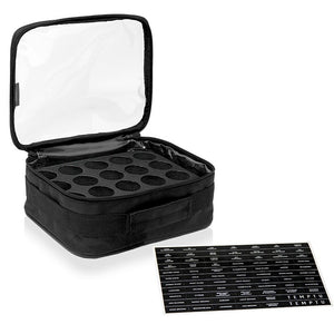 This lightweight, easy-to-clean, nylon bag with a clear PVC top provides easy access and maintenance for all of your TEMPTU makeup, stores your makeup handily in a removable foam tray with custom-measured openings, and includes a full line of Airpod makeup stickers so you can label your pods and find them quickly when on the job.